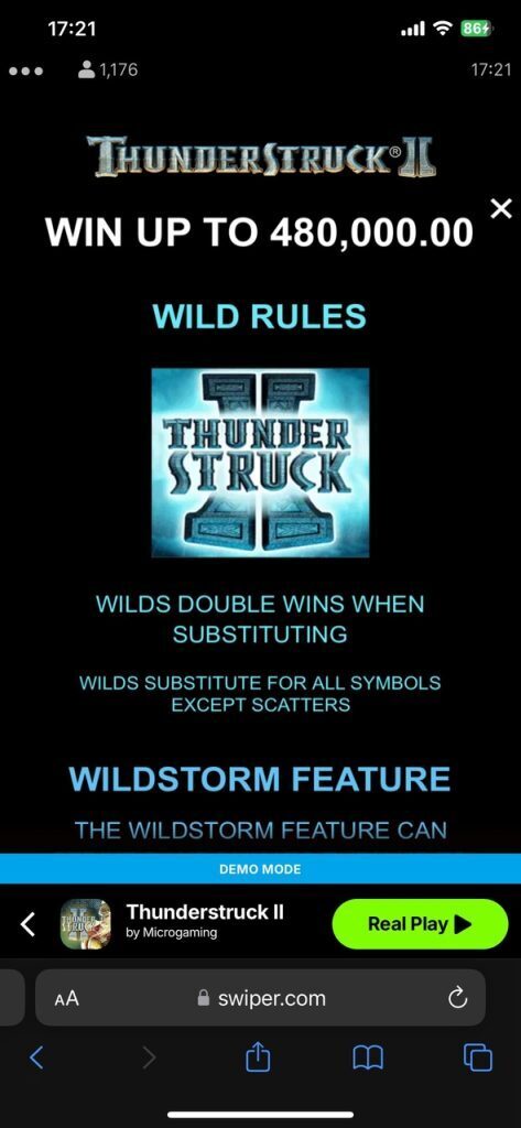 Most Microgaming casinos offer Thunderstruck II and other games. Swiper Casino is the top gambling site to play this title. Always ensure that the site is licensed and regulated with tight security before playing.